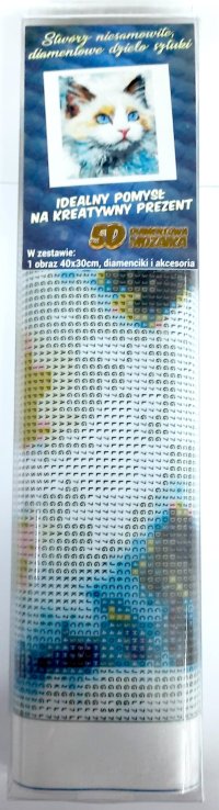 Balení obsahuje: plátno s předtištěným obrázkem, pero na aplikaci kamínků, misku na vysypání kamínků, vosk na nalepení, sadu barevných kamínků Diamantové malování - postup: Horní strana plátna je potažena lepidlem a překrytá průhlednou folií. Folii sundávejte postupně po částech tak, jak budete aplikovat kamínky. Při sejmutí celé folie najednou se může lepicí vrstva znečistit a kamínky by nemusely tak dobře držet. Plátno obsahuje znaky, které jsou uvedeny v přiložené legendě a odkazují na příslušný sáček s kamínky označený číslem. Kamínky z daného sáčku vysypejte do misky. Do hrotu pera naberte vosk, díky kterému se kamínky snadno přichytí na pero. Kamínky perem nanášejte na obrázek. Po nalepení dané barvy kamínky nasypejte zpět do sáčku a pokračujte s další barvou.
