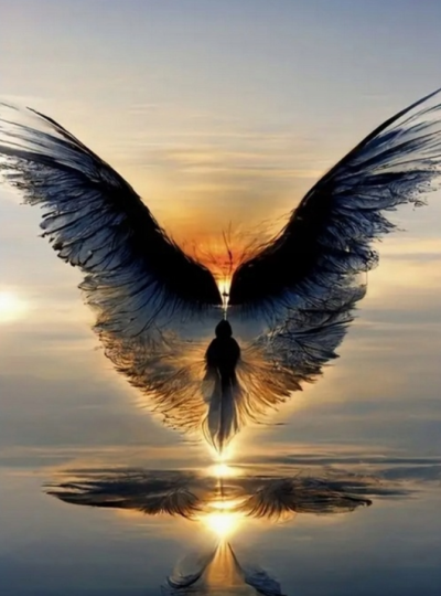 NORIMPEX Diamantové malování Okřídlená postava při západu 30x40cm