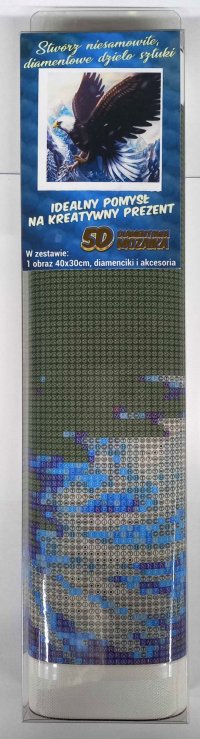 Balení obsahuje: plátno s předtištěným obrázkem, pero na aplikaci kamínků, misku na vysypání kamínků, vosk na nalepení, sadu barevných kamínků Diamantové malování - postup: Horní strana plátna je potažena lepidlem a překrytá průhlednou folií. Folii sundávejte postupně po částech tak, jak budete aplikovat kamínky. Při sejmutí celé folie najednou se může lepicí vrstva znečistit a kamínky by nemusely tak dobře držet. Plátno obsahuje znaky, které jsou uvedeny v přiložené legendě a odkazují na příslušný sáček s kamínky označený číslem. Kamínky z daného sáčku vysypejte do misky. Do hrotu pera naberte vosk, díky kterému se kamínky snadno přichytí na pero. Kamínky perem nanášejte na obrázek. Po nalepení dané barvy kamínky nasypejte zpět do sáčku a pokračujte s další barvou.