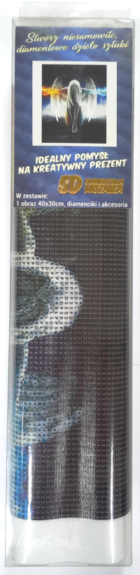 Balení obsahuje: plátno s předtištěným obrázkem, pero na aplikaci kamínků, misku na vysypání kamínků, vosk na nalepení, sadu barevných kamínků Diamantové malování - postup: Horní strana plátna je potažena lepidlem a překrytá průhlednou folií. Folii sundávejte postupně po částech tak, jak budete aplikovat kamínky. Při sejmutí celé folie najednou se může lepicí vrstva znečistit a kamínky by nemusely tak dobře držet. Plátno obsahuje znaky, které jsou uvedeny v přiložené legendě a odkazují na příslušný sáček s kamínky označený číslem. Kamínky z daného sáčku vysypejte do misky. Do hrotu pera naberte vosk, díky kterému se kamínky snadno přichytí na pero. Kamínky perem nanášejte na obrázek. Po nalepení dané barvy kamínky nasypejte zpět do sáčku a pokračujte s další barvou.