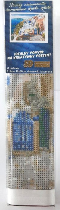 Balení obsahuje: plátno s předtištěným obrázkem, pero na aplikaci kamínků, misku na vysypání kamínků, vosk na nalepení, sadu barevných kamínků Diamantové malování - postup: Horní strana plátna je potažena lepidlem a překrytá průhlednou folií. Folii sundávejte postupně po částech tak, jak budete aplikovat kamínky. Při sejmutí celé folie najednou se může lepicí vrstva znečistit a kamínky by nemusely tak dobře držet. Plátno obsahuje znaky, které jsou uvedeny v přiložené legendě a odkazují na příslušný sáček s kamínky označený číslem. Kamínky z daného sáčku vysypejte do misky. Do hrotu pera naberte vosk, díky kterému se kamínky snadno přichytí na pero. Kamínky perem nanášejte na obrázek. Po nalepení dané barvy kamínky nasypejte zpět do sáčku a pokračujte s další barvou.