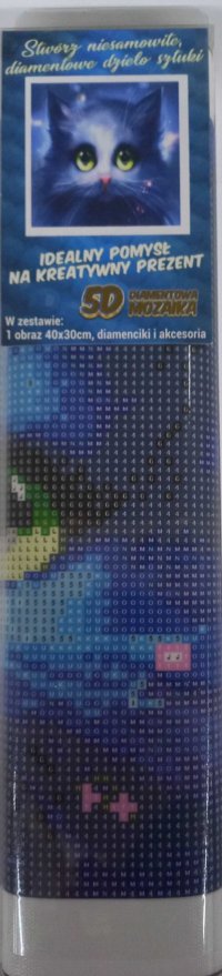 Balení obsahuje: plátno s předtištěným obrázkem, pero na aplikaci kamínků, misku na vysypání kamínků, vosk na nalepení, sadu barevných kamínků Diamantové malování - postup: Horní strana plátna je potažena lepidlem a překrytá průhlednou folií. Folii sundávejte postupně po částech tak, jak budete aplikovat kamínky. Při sejmutí celé folie najednou se může lepicí vrstva znečistit a kamínky by nemusely tak dobře držet. Plátno obsahuje znaky, které jsou uvedeny v přiložené legendě a odkazují na příslušný sáček s kamínky označený číslem. Kamínky z daného sáčku vysypejte do misky. Do hrotu pera naberte vosk, díky kterému se kamínky snadno přichytí na pero. Kamínky perem nanášejte na obrázek. Po nalepení dané barvy kamínky nasypejte zpět do sáčku a pokračujte s další barvou.