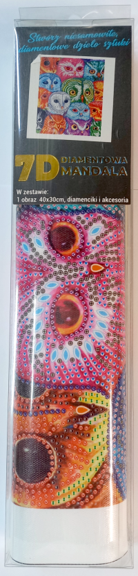 Balení obsahuje: plátno s předtištěným obrázkem, pero na aplikaci kamínků, misku na vysypání kamínků, vosk na nalepení, sadu barevných kamínků Diamantové malování - postup: Horní strana plátna je potažena lepidlem a překrytá průhlednou folií. Folii sundávejte postupně po částech tak, jak budete aplikovat kamínky. Při sejmutí celé folie najednou se může lepicí vrstva znečistit a kamínky by nemusely tak dobře držet. Plátno obsahuje znaky, které jsou uvedeny v přiložené legendě a odkazují na příslušný sáček s kamínky označený číslem. Kamínky z daného sáčku vysypejte do misky. Do hrotu pera naberte vosk, díky kterému se kamínky snadno přichytí na pero. Kamínky perem nanášejte na obrázek. Po nalepení dané barvy kamínky nasypejte zpět do sáčku a pokračujte s další barvou.