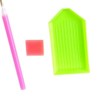 Balení obsahuje: plátno s předtištěným obrázkem, pero na aplikaci kamínků, misku na vysypání kamínků, vosk na nalepení, sadu barevných kamínků Diamantové malování - postup: Horní strana plátna je potažena lepidlem a překrytá průhlednou folií. Folii sundávejte postupně po částech tak, jak budete aplikovat kamínky. Při sejmutí celé folie najednou se může lepicí vrstva znečistit a kamínky by nemusely tak dobře držet. Plátno obsahuje znaky, které jsou uvedeny v přiložené legendě a odkazují na příslušný sáček s kamínky označený číslem. Kamínky z daného sáčku vysypejte do misky. Do hrotu pera naberte vosk, díky kterému se kamínky snadno přichytí na pero. Kamínky perem nanášejte na obrázek. Po nalepení dané barvy kamínky nasypejte zpět do sáčku a pokračujte s další barvou.