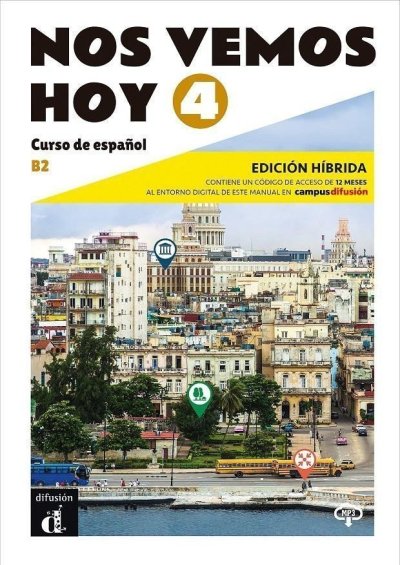 Esta edición híbrida de Nos vemos hoy 4 es la opción ideal para compaginar las ventajas del papel y de las tecnologías digitales, tanto en cursos presenciales como híbridos (blended) y a distancia. Consta del libro del alumno impreso más un código de acceso de 12 meses a Campus Difusión con el que el estudiante puede acceder: -Al libro y al cuaderno digitales de Nos vemos hoy 4. -A todos los recursos propios de este manual (audios, vídeos, ejercicios autocorregibles, itinerarios digitales, etc.) -A todas las funcionalidades de comunicación, asignación de tareas, evaluación y otras de la plataforma.