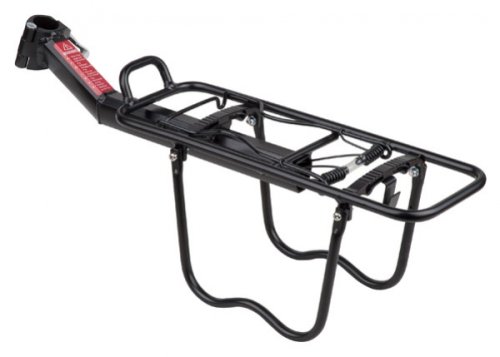 Univerzální nosič na sedlovku s klapákem a postranními výztužemi určený pro většinu běžných kol