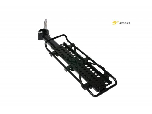 Nosič na sedlovou trubku kola standardních rámů ve velikosti S a M pro převoz lehčích nákladů. Je ideálním řešením v případech, kdy na rámech kola nejsou návarky a závity pro montáž zadního nosiče. Tělo nosiče je svařené z masivního kusu tenkostěnného protlačovaného profilu z hliníkové slitiny AW 6061.