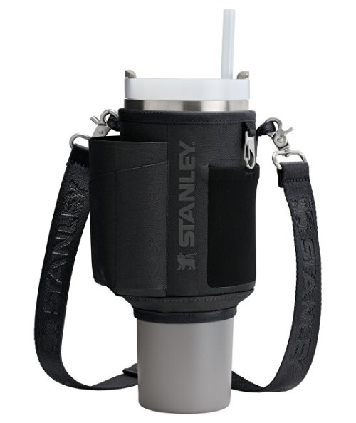Nosička na váš oblíbený nerezový termohrnek Quencher nebo Termoláhev Tumbler. Uvolněte si ruce, přidejte mobil, klíče a pár dalších drobností. V černé barvě.
