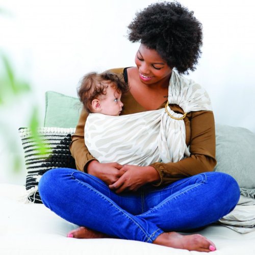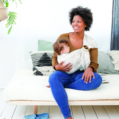 Babylonia BB-Sling je tkaný šátek s kroužky, který je určený pro nošení zejména na boku.