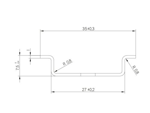Nosná lišta DIN TH 35-7,5 pro použití v datových rozvaděčích Triton se dodává v délce 1 m a šířce 19". Splňuje německou národní normu DIN.