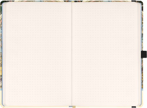 Notes v pevných deskách s motivem díla Alfonse Muchy, s uzavíráním na gumičku, kapsou na drobnosti a poutkem na tužku. Vevnitř najdete 172 tečkovaných stran na žlutém papíře pro zapsání všech vašich nápadů.