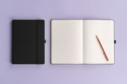 Linkovaný notes Aprint v černém provedení. Klasika i elegance, nejžádanější povrch, na který lze snadno razit firemní loga s jemnou strukturou.