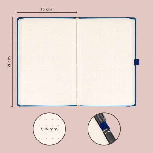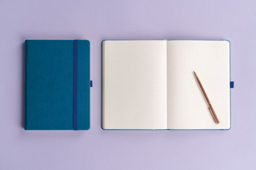 Tečkovaný notes Aprint v modrém provedení. Klasika i elegance, nejžádanější povrch, na který lze snadno razit firemní loga s jemnou strukturou.