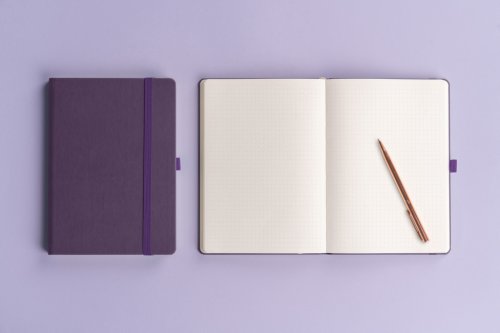 Tečkovaný notes Aprint Neo ve fialovém provedení. Klasika i elegance, nejžádanější povrch, na který lze snadno razit firemní loga s jemnou strukturou.