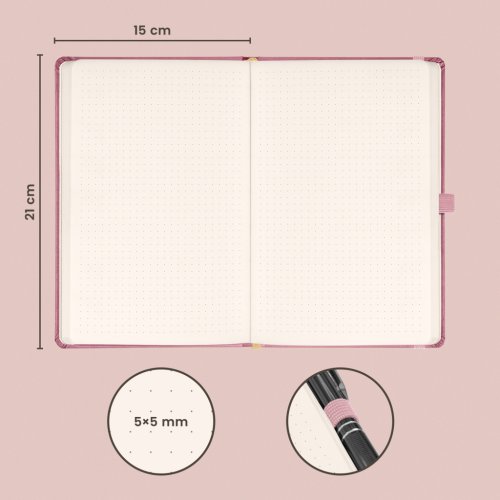 Tečkovaný notes Aprint Neo v růžovém provedení. Klasika i elegance, nejžádanější povrch, na který lze snadno razit firemní loga s jemnou strukturou.