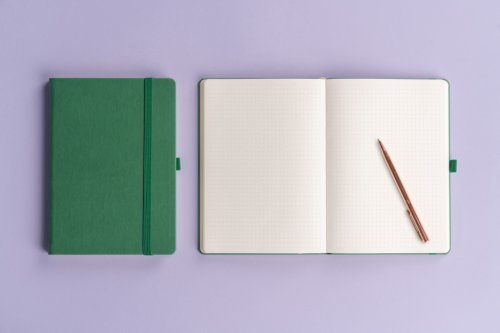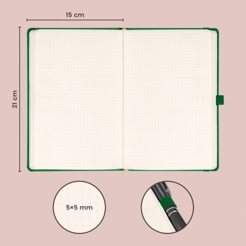 Tečkovaný notes Aprint v zeleném provedení. Klasika i elegance, nejžádanější povrch, na který lze snadno razit firemní loga s jemnou strukturou.
