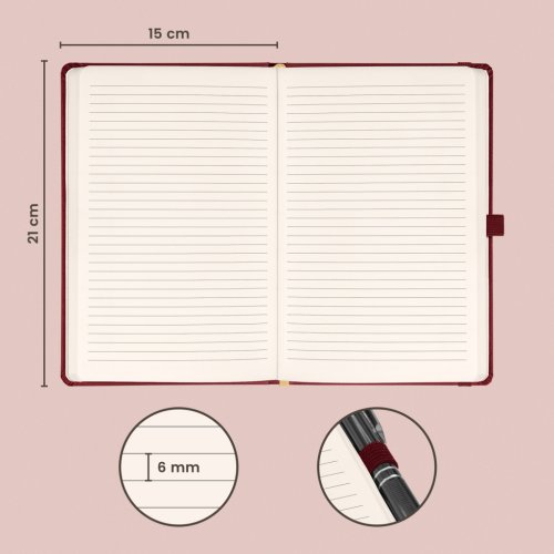 Linkovaný notes Balacron v provedení bordó. Povrch diáře si získal oblibu díky kvalitnímu svrchnímu materiálu, který je extrémně odolný vůči vnějšímu poškození.