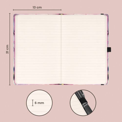 Kvalitní linkovaný notes v pevných deskách s uzavíráním na gumičku, poutkem na tužku a vnitřní kapsou na drobnosti.