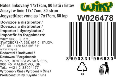 Notes o velikosti 17x17 cm MIX. 80 linkovaných stran. Různé motivy a barvy.