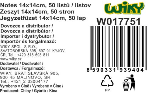 Notes spirála linkovaný o velikosti 14x14 cm, 50 stran.