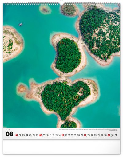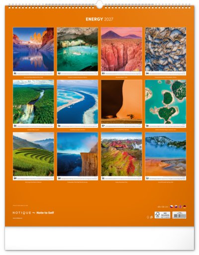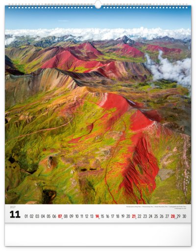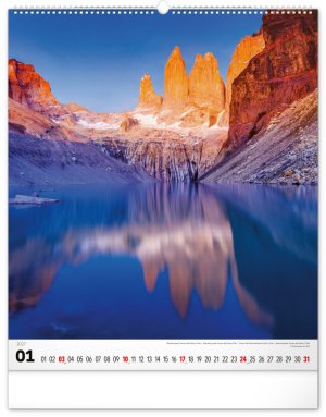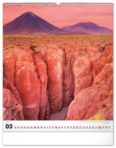 Kalendář z kolekce Platinum Collection obsahuje velkoformátové fotografie přírodních scenérií z exotických oblastí. Pověste si na zeď okno do světa! Fotografie majestátních And nebo solné pláně doplňuje univerzální kalendárium na bílém pozadí.