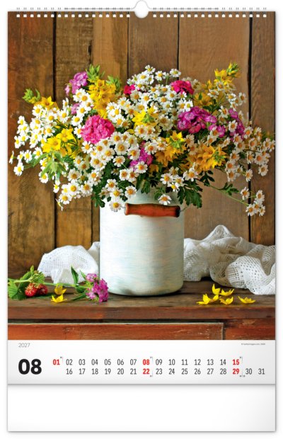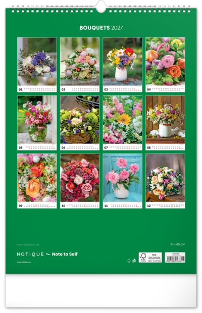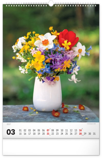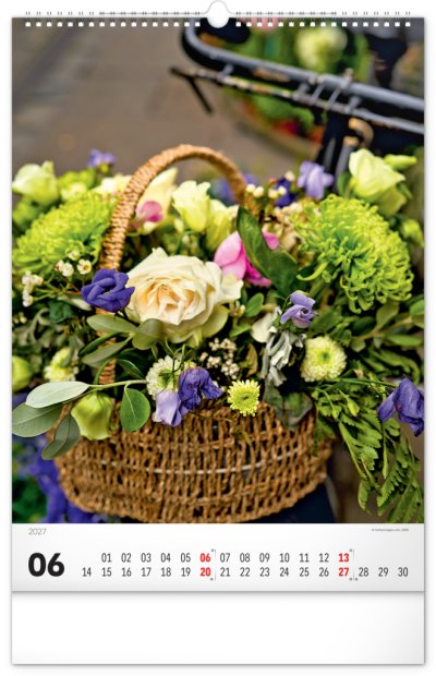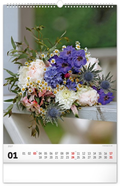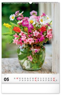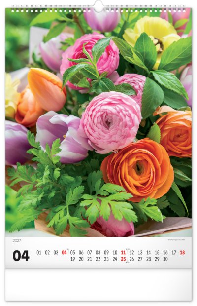Originálně naaranžované kytice z čerstvých živých květů v nástěnném kalendáři s jednoduchým kalendáriem. Potěšte se pohledem na fotografie pestrých a nikdy nevadnoucích květů bez ohledu na roční dobu.