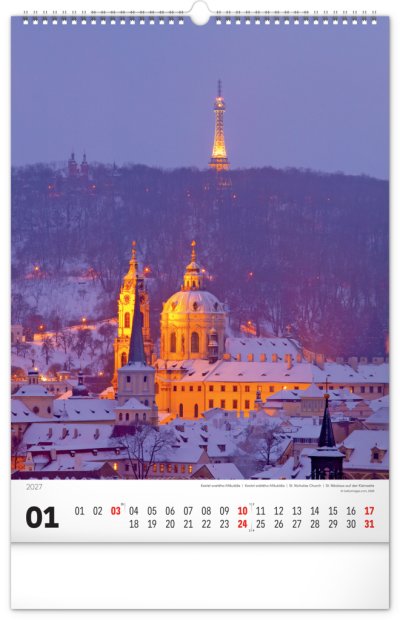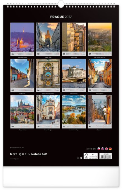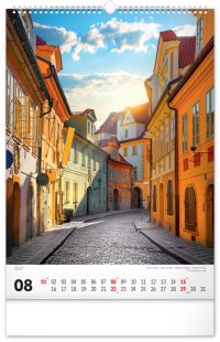 Kalendář, který vás provede věhlasnými památkami české metropole, která se právem řadí mezi nejkrásnější města Evropy. Prostřednictvím dvanácti fotografií ve výškovém formátu navštívíte jak známé památky, tak neobvyklá zákoutí. Záběry na Karlův most, Pražský hrad nebo Václavské náměstí doplňují popisky ve čtyřech jazycích a jednoduché bílé kalendárium. Kalendář potěší všechny milovníky historie a architektury.