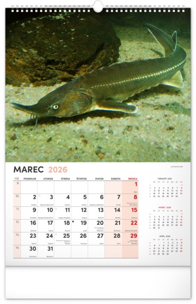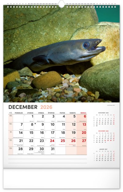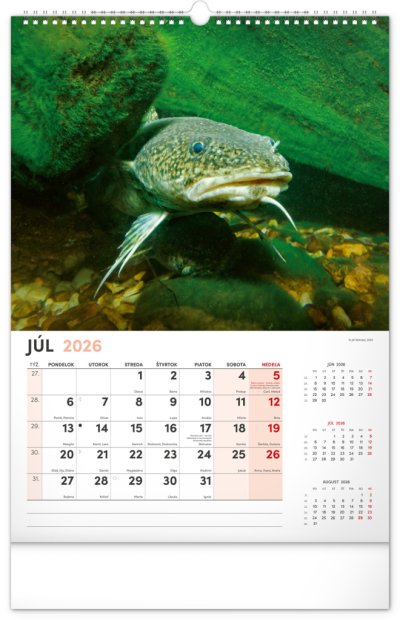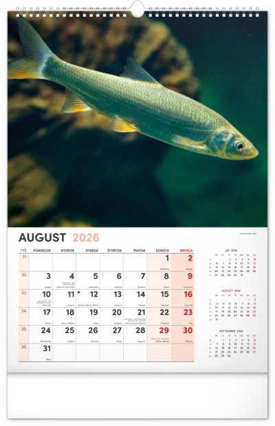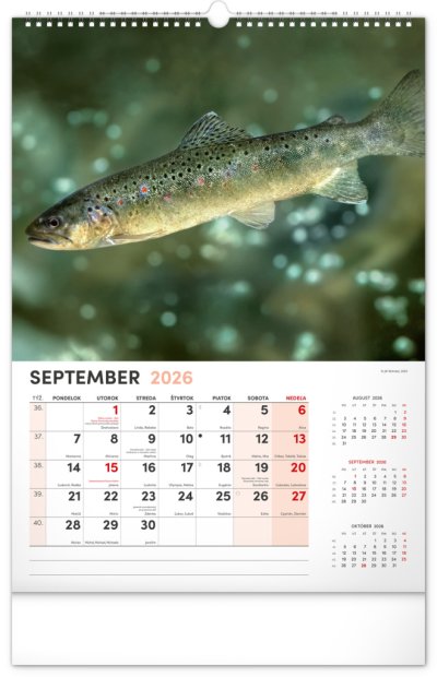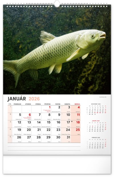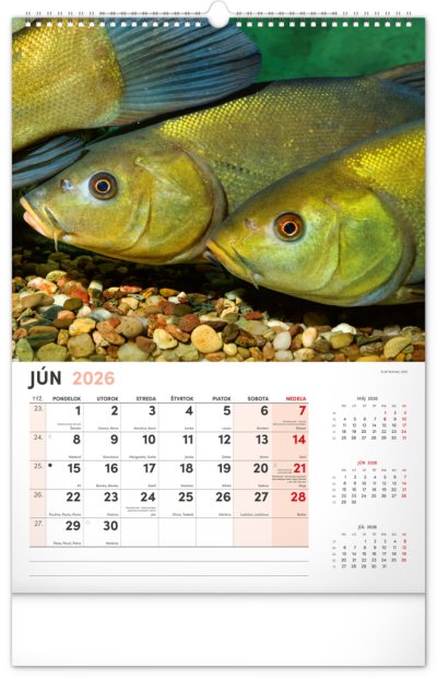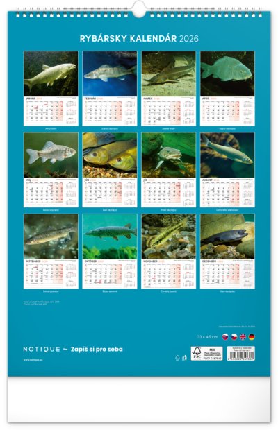 Dvanáct fotografií z vodního světa v tomto nástěnném kalendáři zachycují ty nejskvostnější úlovky. Rozšířené kalendárium obsahuje slovenská jména, svátky a památné dny, tříměsíční přehled na každé straně a prostor pro poznámky. Nadchne všechny vášnivé rybáře a milovníky vodních ploch.