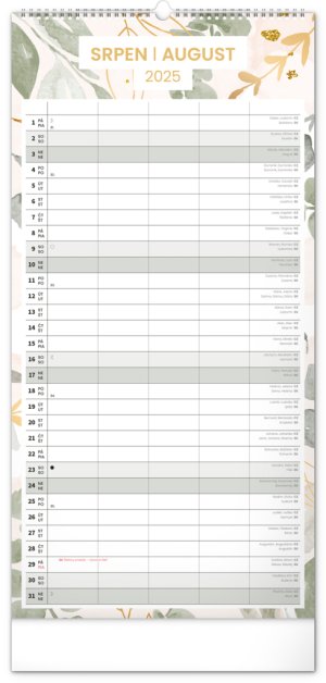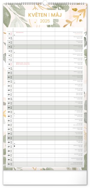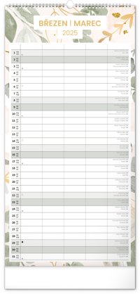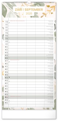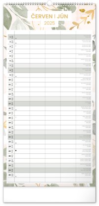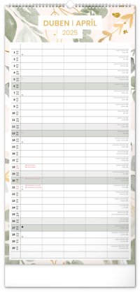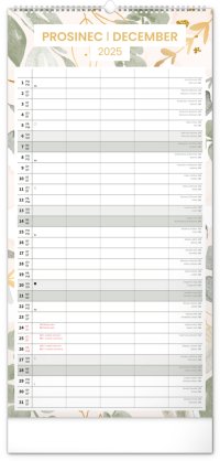 Zorganizujte všechny rodinné aktivity v praktickém nástěnném kalendáři, který obsahuje české kalendárium a samostatný plánovač aktivit pro až pět členů domácnosti. Kalendář doplňují ilustrace květin pro příznivce jednoduchých motivů.