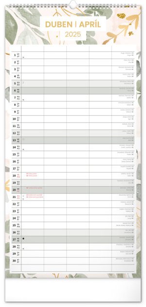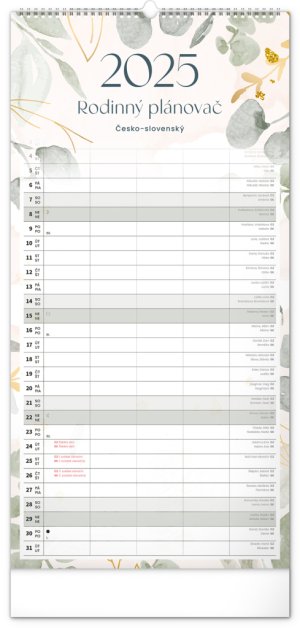 Zorganizujte všechny rodinné aktivity v praktickém nástěnném kalendáři, který obsahuje české kalendárium a samostatný plánovač aktivit pro až pět členů domácnosti.