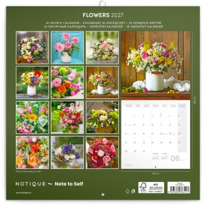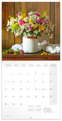 Dopřejte si krásu čerstvých květin, které nikdy neopadají, na fotografiích v poznámkovém kalendáři. V kalendáři kromě fotek najdete přehledné kalendárium od září 2026 do prosince 2027 v šesti jazycích, měsíční fáze, důležité svátky a prostor pro poznámky na každý den.