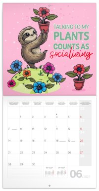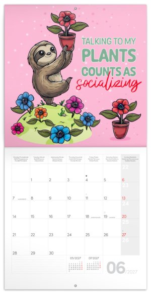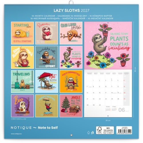 Poznámkový kalendář s roztomilými obrázky relaxujících lenochodů a trefným veselým popiskem pro každý měsíc. Ideální dárek pro milovníky těchto sympatických zvířat, který vám každý den přinese úsměv na tvář. Kalendář nabízí dostatek prostoru pro vaše poznámky a plány, což z něj činí praktický i estetický doplněk vaší domácnosti nebo kanceláře. Obsahuje přehledné kalendárium od září 2026 do prosince 2027 v šesti jazycích, fáze měsíce, důležité svátky a prostor pro poznámky na každý den.
