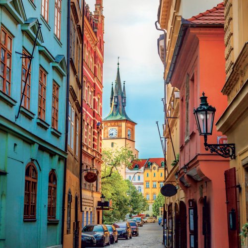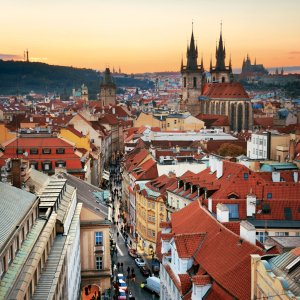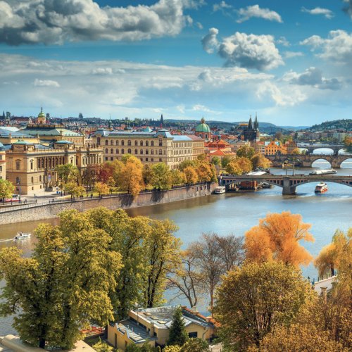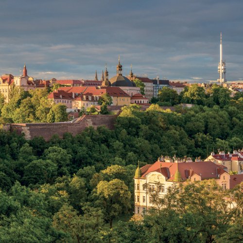 Poznámkový kalendář s nejznámějšími lokalitami v Praze obsahuje osmijazyčné kalendárium od září 2026 do prosince 2027, měsíční fáze a prostor pro poznámky na každý den.