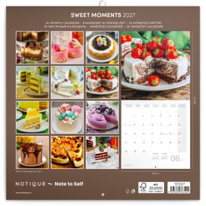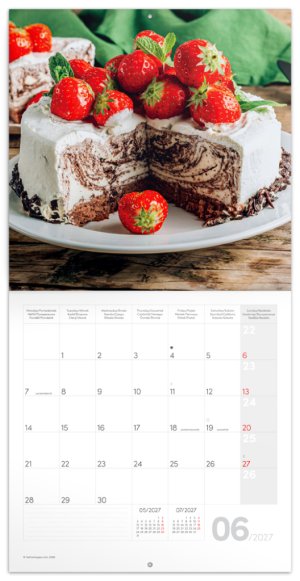 Jedinečný kalendář pro všechny milovníky sladkostí! Pokochejte se pohledem na různé druhy dortů na stránkách tohoto kalendáře. Uvnitř najdete šestijazyčné kalendárium, měsíční fáze, důležité svátky a prostor pro vaše poznámky a plány.