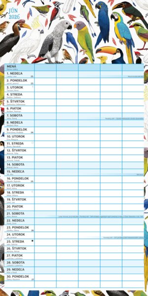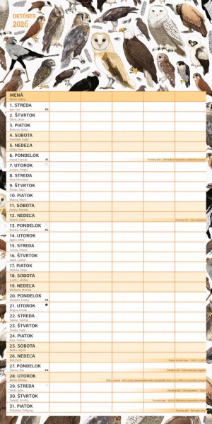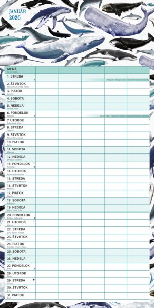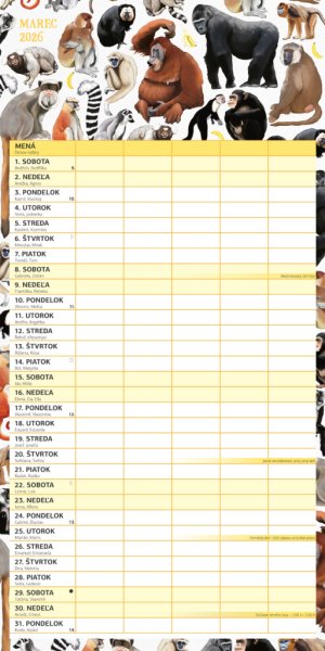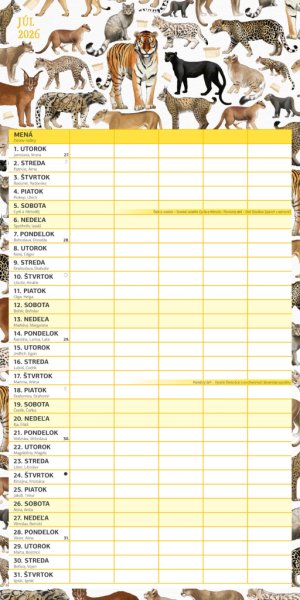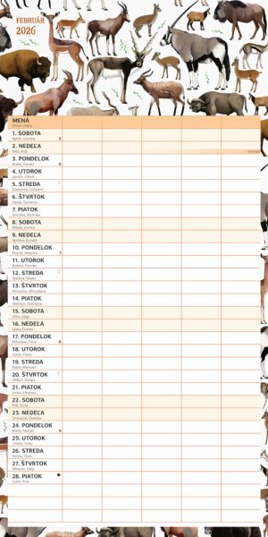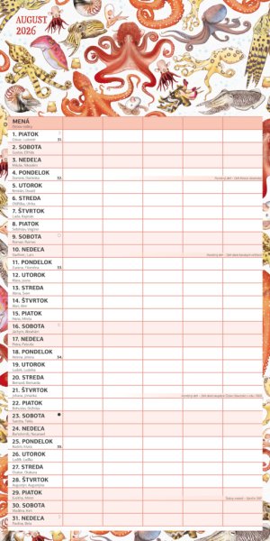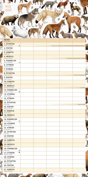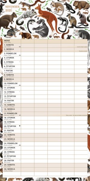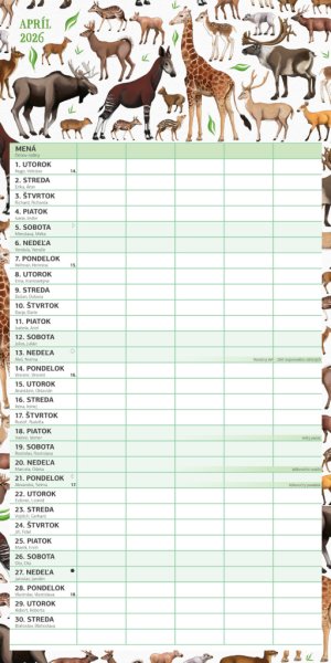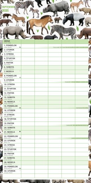 Slovenské kalendárium a samostatný plánovač aktivit pro až pět členů domácnosti doplňují krásné ilustrace zvířat. Nechybí státní svátky ani měsíční fáze.