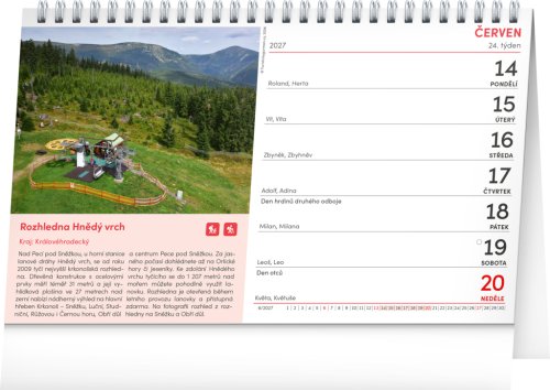 Dochází vám nápady a fantazie, kam vyrazit na výlet? V našem stolním kalendáři naleznete 53 tipů pro vaše nová dobrodružství. Ideální a praktický kalendář, který bude pomocníkem pro všechny víkendové výletníky. Stačí si jen vybrat cíl vaší příští cesty. Fotografie z jednotlivých míst doplňuje české týdenní kalendárium.