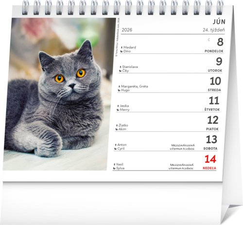 Oslavte svátek spolu se svým kočičím parťákem – v tomto praktickém slovenském stolním kalendáři najdete jména koček na každý den. V kalendáři najdete hezké fotografie a prostor na poznámky.