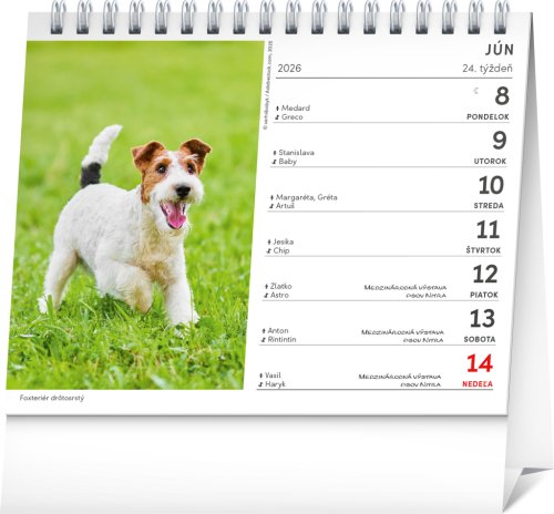 Oslavte svátek spolu se svým psím parťákem – v tomto praktickém slovenském stolním kalendáři najdete jména psů na každý den. Kalendář zdobí hezké fotografie od Zuzany Tillerové a nechybí ani prostor na poznámky.