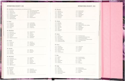 Týdenní diář v anglickém jazyce s mezinárodními svátky a praktickým magnetickým uzavíráním je ideální volbou pro ty, kteří chtějí mít své plány přehledně pod kontrolou. Nabízí sloupcové rozvržení jednotlivých týdnů s dostatkem prostoru pro každodenní poznámky. Součástí jsou praktické měsíční přehledy, ideální pro plánování dovolených či prázdnin.