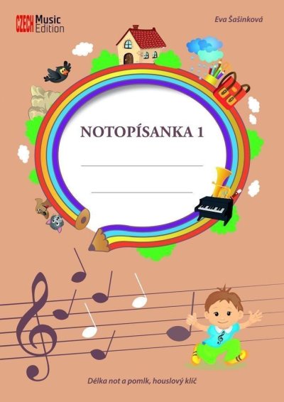 Notopísanka 1 - Délka not a pomlk, houslový klíč čb pracovní sešit pro ZŠ a ZUŠ, děti se v ní naučí psát houslový klíč, notu celou, půlovou, čtvrťovou a osminovou. Také všechny pomlky a tempové označení taktu. Notopísanka obsahuje také úkoly a rébusy pro děti, na kterých si hravou formou procvičí vše, co se naučily. Notopísanka je určená pro I. stupeň ZŠ a PHV na ZUŠ.