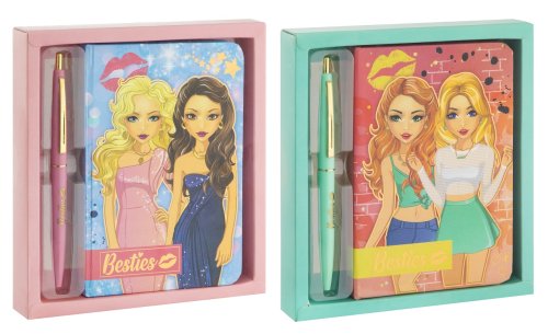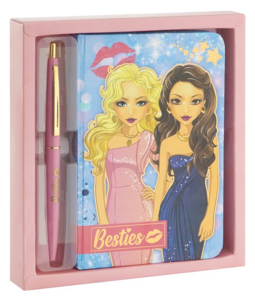 Krásný diář s propisovací tužkou pro malé slečny. Diář má pevné desky.