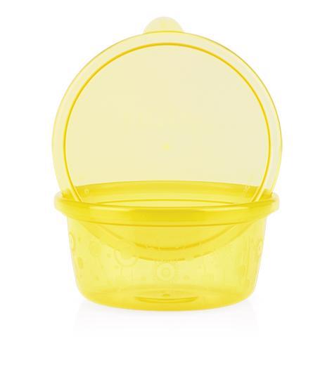 Miska bez příboru – vhodná do mikrovlnné trouby: MISE/TÁCKA: Vhodná do myčky nádobí a mikrovlnné trouby. NÁVOD K POUŽITÍ: Mikrovlnnou troubu používejte pouze k ohřívání jídla (ne k vaření). Vložte misku do mikrovlnné trouby a ohřívejte podle správného času a výkonu pro jídlo v misce. Pokud je miska vybavena víčkem, nikdy ji během ohřívání zcela nezavírejte. Při otevírání víčka buďte opatrní, protože z něj bude unikávat pára, která může způsobit popáleniny. Ohřívání v mikrovlnné troubě může způsobit lokálně vysoké teploty. Po ohřívání promíchejte jídlo ze stran do středu a vždy zkontrolujte teplotu před podáváním. Nepoužívejte mikrovlnnou troubu k ohřívání nebo vaření kyselých nebo mastných potravin, protože může dojít k popálení, opalování nebo vytváření bublin, pokud se miska/tácek prohřeje v mikrovlnné troubě. Pro bezpečnost a zdraví vašeho dítěte: UPOZORNĚNÍ: Vždy používejte tento výrobek pod dohledem dospělé osoby. Před podáváním vždy zkontrolujte teplotu jídla. Před každým použitím zkontrolujte výrobek. Vyhoďte jej při prvních známkách poškození nebo slabosti. Neponechávejte výrobek na přímém slunečním světle nebo teple. Nepovolte dítěti chodit nebo běhat s miskou. Nikdy nenechávejte dítě bez dozoru při používání tohoto nebo jakéhokoli jiného výrobku pro děti. Tento výrobek není hračka. ČIŠTĚNÍ: K zajištění hygieny: Před prvním použitím omyjte. Vhodná do myčky nádobí (pouze horní zásuvka) nebo omyjte ručně v teplé vodě s jemným mýdlem. Důkladně opláchněte. NEPOUŽÍVEJTE parní sterilizátor, nepřevařujte ani nepoužívejte mikrovlnnou troubu k čištění. Nepoužívejte drsné čistící prostředky k čištění misky. Uchovávejte tyto informace.