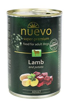 Konzerva Nuevo Jehněčí s bramborem je vhodná pro dospělé psy všech plemen, s obsahem jehněčího masa s bramborem. Výběrové, jehněčí maso je vysoce obohaceno o potřebný zdroj bílkovin, naopak brambory skvěle podporují správné trávení.