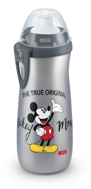 NUK FC Láhev Sports Cup, Disney - Mickey 450 ml, SI push-pull pítko. Mluví, dovádějí, stojí na vlastních nohou a pijí bez Vaší pomoci. Změn, kterými si vaši nejmenší prošli v prvních třech letech života, je nespočet. Není proto divu, že se musí měnit i jejich lahvičky. Aby mohly Vaše děti zahánět žízeň i během jejich sportování, byly naše lahvičky vybaveny nekapajícím push-pull pítkem, se kterým bude hračka lahvičku používat. Hlavní vlastnosti: ideální pro děti od 3 let, na hry a sport s nekapajícím push-pull (vytahovacím-zatlačovacím) pítkem součástí je praktické víčko, které udržuje pítko hygienické a klip, pomocí kterého můžete lahvičku připnout k batohu či za pásek (pro větší děti) extra lehká a nekapající lahvička, vhodná i pro mytí v myčce lze zakoupit náhradní pítko neobsahuje BPA k dispozici ve dvou atraktivních provedeních s veselým motivem Mickeyho Mouse