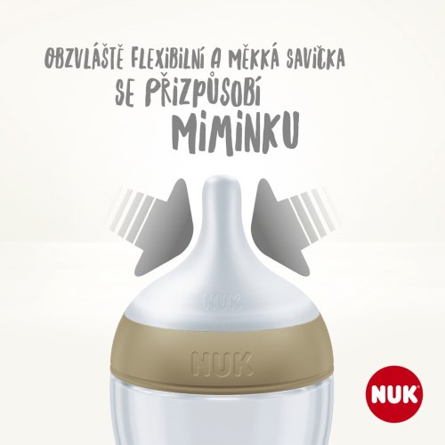 Upozornění k použití: Před prvním použitím rozložte výrobek na jednotlivé díly, tyto vyčistěte a na 5 minut umístěte do vroucí vody. Slouží to hygienickým účelům. Před každým dalším použitím pečlivě vyčistěte. V případě potřeby sterilizujte. Uchovávejte v suchu a hygienicky. Při čištění používejte mycí prostředek NUK nebo jemný prostředek pro ruční mytí a zbytky potravin odstraňte také ze skrytých oblastí. Jeli zapotřebí, výrobek namočte, v žádném případě neškrábejte vnitřek láhve. Důkladně propláchněte. Savičky a láhve nepatří do myčky – hrozí poškození materiálu působením čisticích prostředků pro myčky! Některé potraviny mohou způsobit zabarvení materiálu (např. mrkvová šťáva) nebo způsobit zápach (např. fenyklový čaj). To neomezuje vhodnost použití. Pokud láhev vykazuje na vnitřní straně poškození (např. škrábance), musí být z hygienických důvodů vyměněna. Při vyvařování nebo napařování láhev vždy rozložte na jednotlivé díly a nechte otevřené, protože jinak může dojít k jejich deformacím. Při napařování doporučujeme parní sterilizátor NUK nebo NUK parní sterilizátor do mikrovlnných trub. K zabránění poškození materiálu vždy dodržujte návod k použití sterilizátoru. Při dezinfekci plastových lahví nesmí být překročena maximální teplota 100°C (pokyn na lahvi)! Barvy měnící se podle teploty jsou citlivé na vlhké teplo a odvápňovací prostředky. Při častém vaporizování nebo vyvařování dochází k vyblednutí barev.Pro savičku na krmení: Před každým použitím zkontrolujte savičku na krmení a roztáhněte ji do všech směrů. Při prvních známkách poškození nebo slabých míst zlikvidujte. Před každým použitím zkontrolujte mírným roztažením průchodnost odvzdušňovacího ventilu a otvoru na pití. Neponořujte do léčiv! Savičku na krmení nebo lahev nikdy nevystavujte přímému slunečnímu záření nebo teplu nebo ji nenechávejte déle než je uvedeno v desinfekčním prostředku (sterilizační roztok), může to snížit pevnost savičky nebo poškodit materiál. Savičku z hygienických a bezpečnostních důvodů vyměňujte každé 1 až 2 měsíce. Pro LATEXOVÉ savičky: Vyrobeny z přírodního kaučukového latexu. Pro skleněné láhve: K promíchání v láhvi nepoužívejte kovové lžíce, protože přitom mohou vzniknout vlasové trhliny, které mohou později vyvolat prasknutí. Při vyšroubování / zašroubování lahve nikdy nepoužívejte násilí. Lahev při minimálních známkách poškození jako jsou trhlinky atd. vyměňte. Lahve vždy ohřívejte otevřené (nebezpečí výbuchu) a ochlaďte (deformace)! Při ohřívání v mikrovlnné troubě je důležitá opatrnost; může dojít k místnímu přehřátí. Ohřáté potraviny se musí vždy promíchat a před krmením se musí zkontrolovat teplota.
