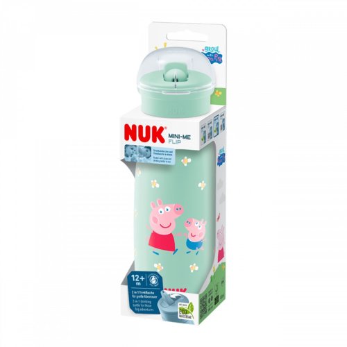 Láhev NUK Peppa Pig Mini-Me Flip, s pítkem 2v1 odolným proti kousání, netekoucí, 450 ml, od 12 měsíců.
