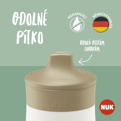 Láhev NUK Mini-Me Sip – moderní dětská láhev na pití Je příjemné, když se dětská lahvička na pití líbí nejen dětem, ale i rodičům. Nová láhev NUK Mini-Me Sip je vhodná pro děti od 9 měsíců. Vhodná pro děti – moderním a minimalistickým způsobem. Praktická a zároveň stylová. Nerozbitný plast je vyroben z více než 80 % z udržitelných materiálů. Inovativní pítko hravě odolá dětským zoubkům. Jasný závazek k udržitelnosti a kvalitě. Tento plast je 100% spojen s obnovitelnými surovinami. V souladu s přístupem hmotnostní bilance a certifikován společností ISCC PLUS.