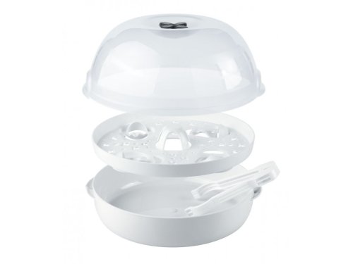 Bezpečnostní pokyny Všeobecné pokyny: – Než začnete sterilizátor používat, pozorně si prosím přečtěte tento návod k obsluze. Tento návod je součástí sterilizátoru a musí být vždy k dispozici. – Sterilizátor používejte jen k popsanému účelu použití. – Pokud vlastníte kombinovanou mikrovlnnou troubu, zajistěte, aby sterilizátor nebyl vystaven žáru grilu nebo konvekčnímu ohřevu, jinak může dojít k jeho poškození. – Během provozu nikdy nenechávejte přístroj bez dozoru. – Sterilizátor by měl být umístěn pouze na pevném, rovném, suchém a nehořlavém povrchu. – Sterilizátor se nesmí pokládat na plotýnky vařiče, vkládat do horké trouby ani stavět blízko plynových nebo průtokových ohřívačů. Předcházení spálení a opaření: Sterilizátor pracuje při vysokých teplotách za použití horké páry. Abyste se vyvarovali spálení nebo opaření, dodržujte prosím níže uvedené pokyny. – Parní sterilizátor je velmi horký, když se vyndává z mikrovlnné trouby. Vyčkejte nejméně 5 minut, než zchladne, a poté jej vyjměte. – K přesunutí horkého sterilizátoru z mikrovlnné trouby na místo určení použijte vhodné rukavice. – Při manipulaci s přístrojem jej vždy držte za spodní misku. – Při otevírání víka dávejte pozor, neboť hrozí riziko, že se opaříte horkou párou. Víko otevřete pouze jeho sklopením, směrem od vašeho těla, aby mohla horká pára unikat směrem od vás. – Lahve a příslušenství vyjměte pomocí dodaných kleští. Pro ochranu vašeho dítěte: Varování! Děti často špatně vyhodnotí nebezpečí, což může vést k jejich poranění, proto vezměte prosím na vědomí toto: – Tento výrobek se může používat pouze pod dohledem dospělé osoby. – Dbejte na to, aby byl přístroj vždy uchováván mimo dosah dětí. – Zajistěte, aby byl plastový obal uložen mimo dosah dětí – plastový obal není hračka.