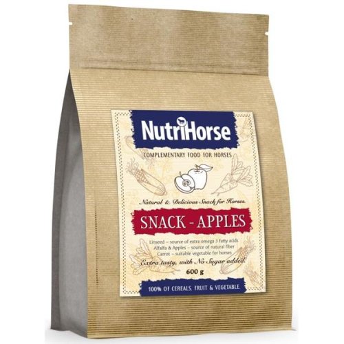 Doplňkové krmivo pro koně s Omega-3 mastnými kyselinami a bez přidaného cukru je ideální zdravá odměna pro vašeho koně. Složení: Ječmen, kukuřice, vojtěška, sušená jablka (20%), mrkev (6%), lněné semínko (2%), řepkový olej (0,2%). Analytické složky: hrubý protein 11%, obsah tuku 3,5%,hrubá vláknina 9%, hrubý popel 3,5%, vlhkost 10%, Omega-3 mastné kyseliny 0,3%. Dávkování: Pochoutka s jablky je ideální odměnou pro všechny koně během tréninku, po zátěži nebo jen tak pro radost. Pečlivě vybrané suroviny podporují zdravé trávení a skvěle chutnají. Zdravá odměna pro budování vztahu s vaším koněm.