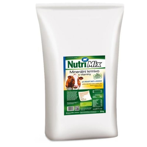PROBLÉM Nedostatečná nebo nevyvážená krmná dávka pro mladý skot v odchovu nebo ve výkrmu má za následek snížené přírůstky, nižší využitelnost krmiva, menší životaschopnost a horší zdravotní stav. U dojnic může snížit produkci mléka. ŘEŠENÍ Nutrimix pro mladý skot a dojnice je určen pro doplnění minerálních látek a potřebných vitaminů do krmných dávek pro mladý skot od 6 měsíců stáří a pro dojnice chované v malochovech. Příznivě ovlivňuje mléčnou užitkovost dojnic a zajišťuje úspěšný odchov mladého skotu. Přispívá k udržení dobrého zdravotního stavu zvířat. SLOŽENÍ v 1 kg: vápník 100 g, fosfor 55 g, sodík 75 g, hořčík 25 g, vitamin A 800 000 m.j., vitamin D3 97 000 m.j., vitamin E 500 mg, železo 930 mg, zinek 5 000 mg (z toho organická vazba 1 000 mg), mangan 1 960 mg (z toho organická vazba 400 mg), měď 710 mg (z toho organická vazba 140 mg), jod 105 mg, kobalt 40 mg, selen 6 mg (z toho organická vazba 1,2 mg), přírodní antioxidant 250 mg. ZPŮSOB APLIKACE Odměřené množství přípravku se zamíchá dohromady s jádrem nebo se rovnoměrně nasype do žlabu na píci. Je nutné zajistit trvalý přístup k zdravotně nezávadné vodě. DÁVKOVÁNÍ Mladý skot: 50 - 150 g / 1 ks / den Dojnice: 100 – 200 g / 1 ks / den DOPORUČENÁ KRMNÁ DÁVKA PRO DOJNICI O HMOTNOSTI 650 KG A PRODUKCI 16 l MLÉKA/DEN: Pastva, seno (2 kg), obilný šrot 3 – 4 kg, 200 g Nutrimixu pro dojnice.